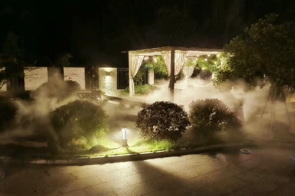 景观人造雾系统可以将水分子雾化,雾粒子小的象自然的云层一样飘渺,配合景区的风景形成含有负氧离子的健康雾。